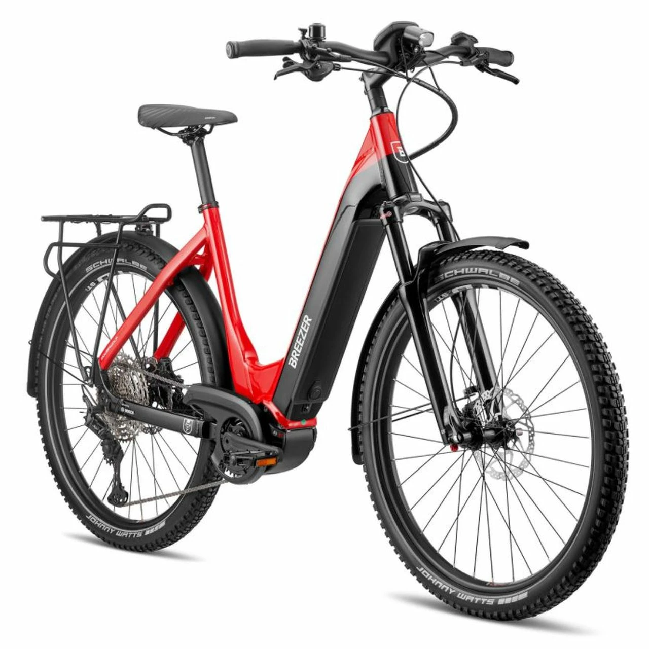 | Rahmen: | Breezer hydroformed aluminum, down tube for integrated Bosch Power Tube 625Wh or 500Wh battery, Bosch 4th gen. motor interface, dropout with 12mm replaceable hanger |