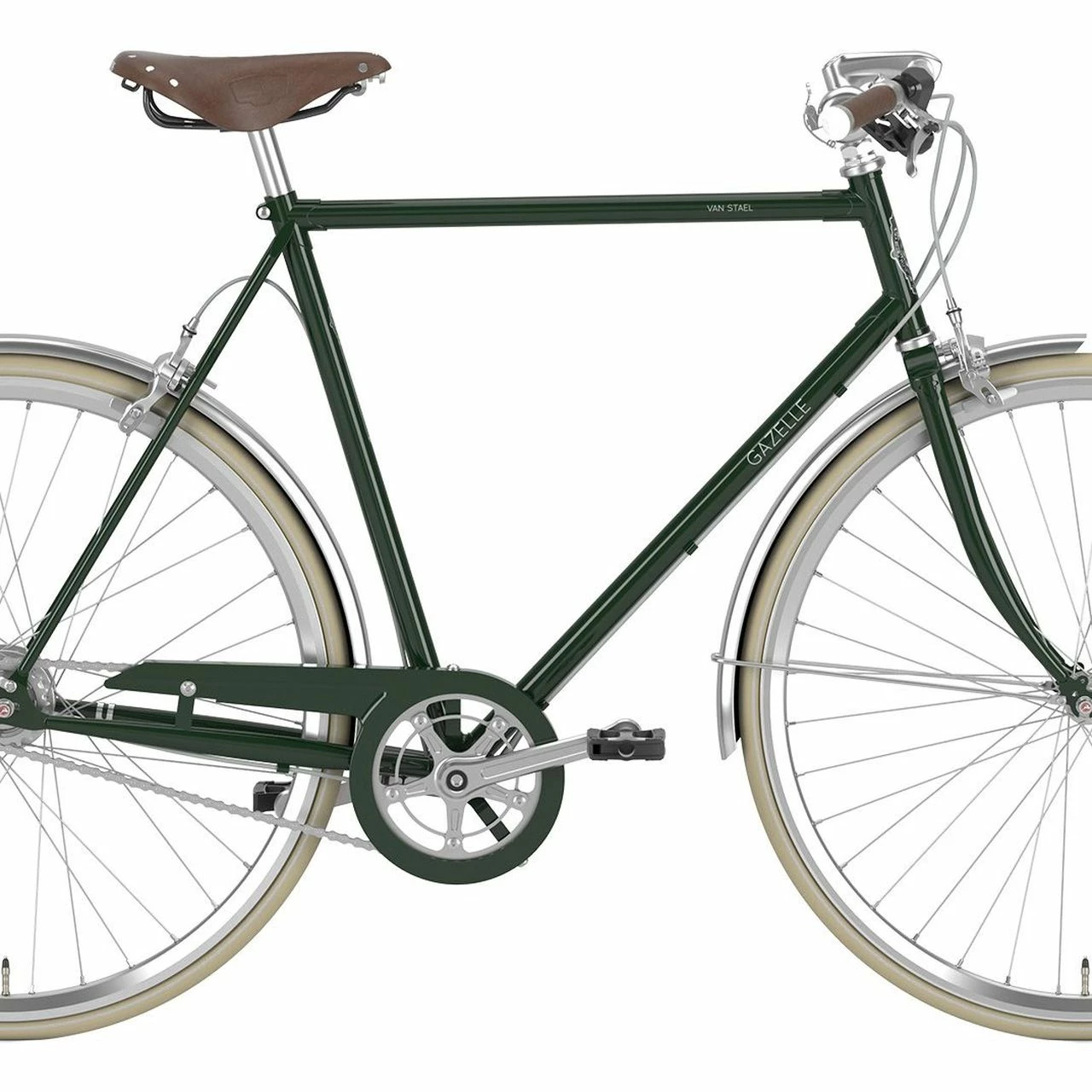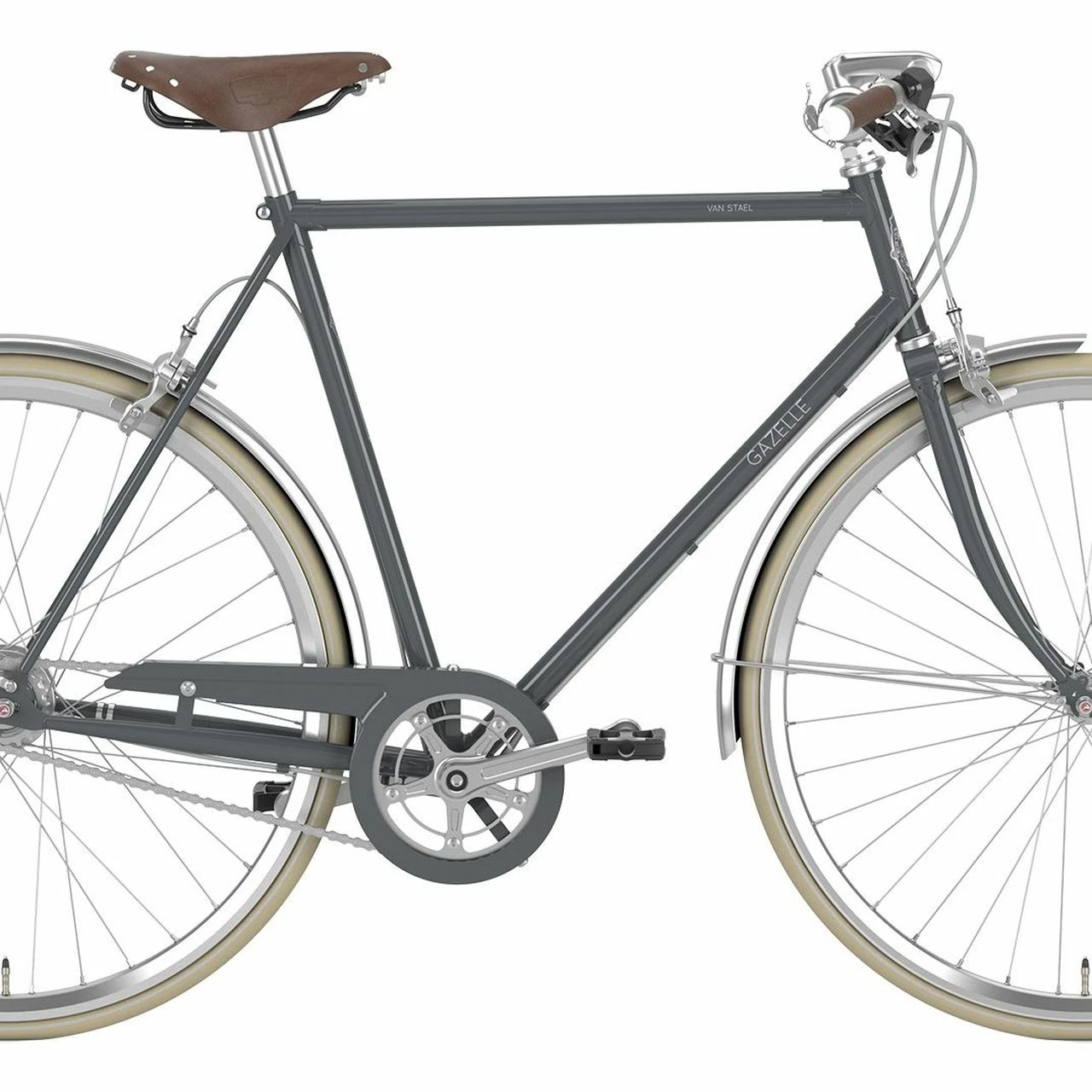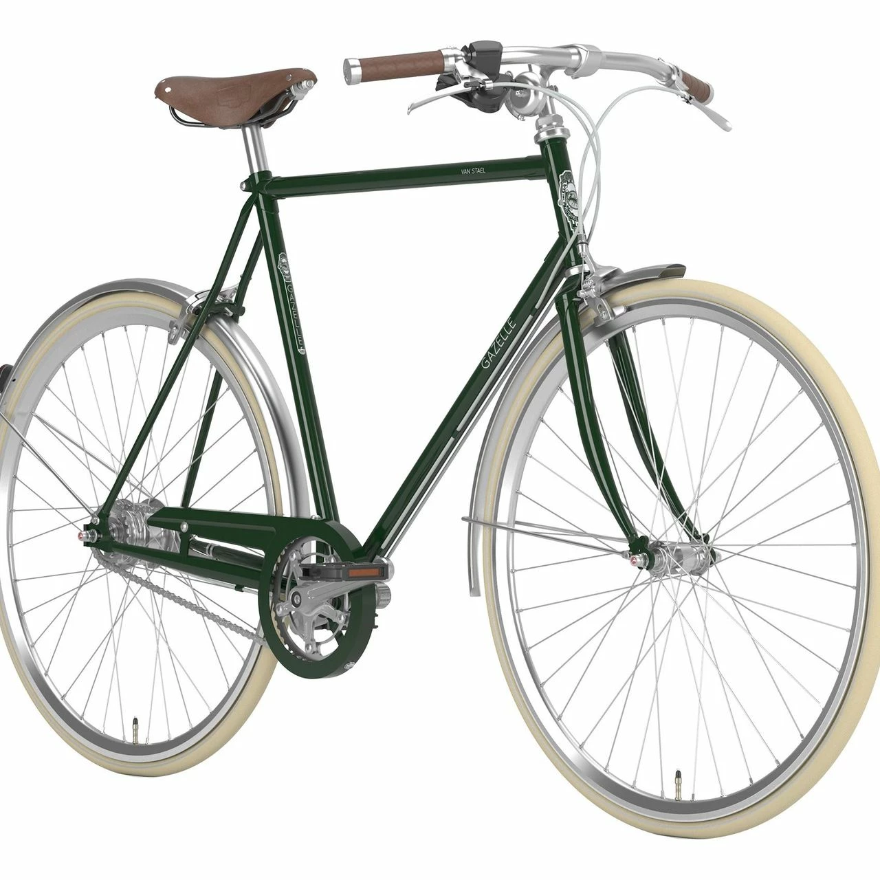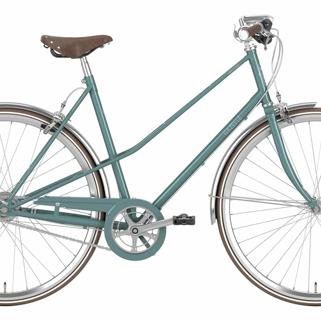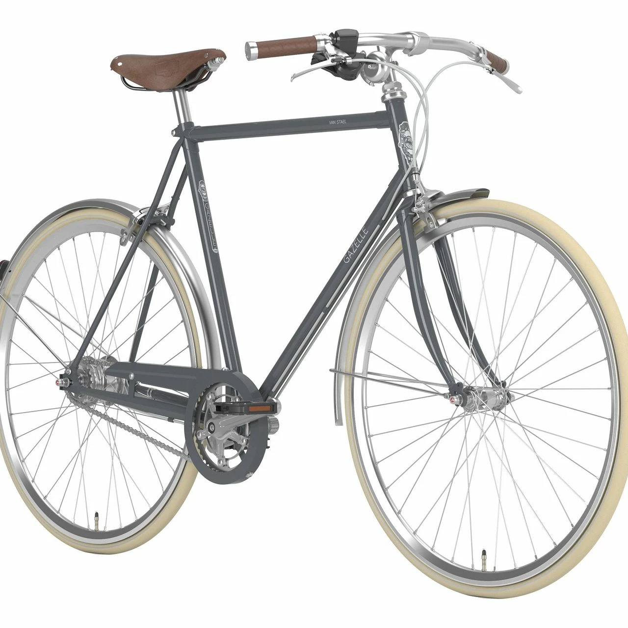 Das Gazelle Van Stael Trekking Bike ist ausgestattet mit einer Gazelle Stahl Starrgabel, einer 7-Gang Shimano Nexus Nabenschaltung mit Freilauffunktion und einer Tektro V-Brake.