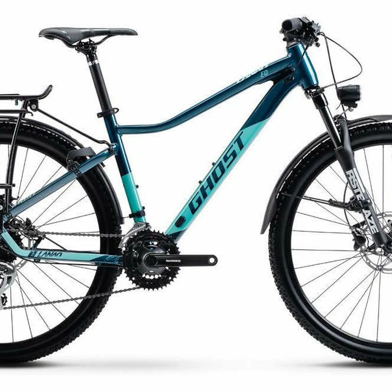 Das Ghost Lanao EQ 27.5R Damen Mountain Bike ist ausgestattet mit einer RST Blaze Federgabel, einer 24-Gang Kettenschaltung mit Shimano Acera RD-M360 Schaltwerk und einer hydraulischen Tektro HD-M275 Scheibenbremse.