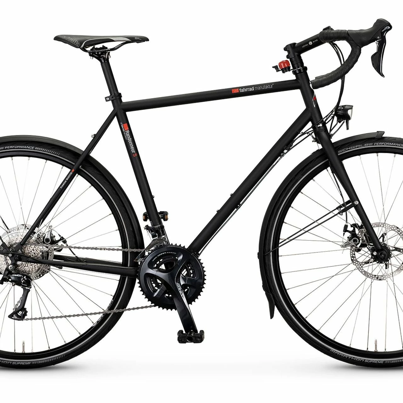 Das vsf fahrradmanufaktur T-Randonneur Sport Trekking Bike 2022 ist ausgestattet mit einer vsf fahrradmanufaktur Aluminium Starrgabel, einer TRP Spyre Scheibenbremse und einer 27-Gang Kettenschaltung mit Shimano Sora RD-R3000 Schaltwerk.