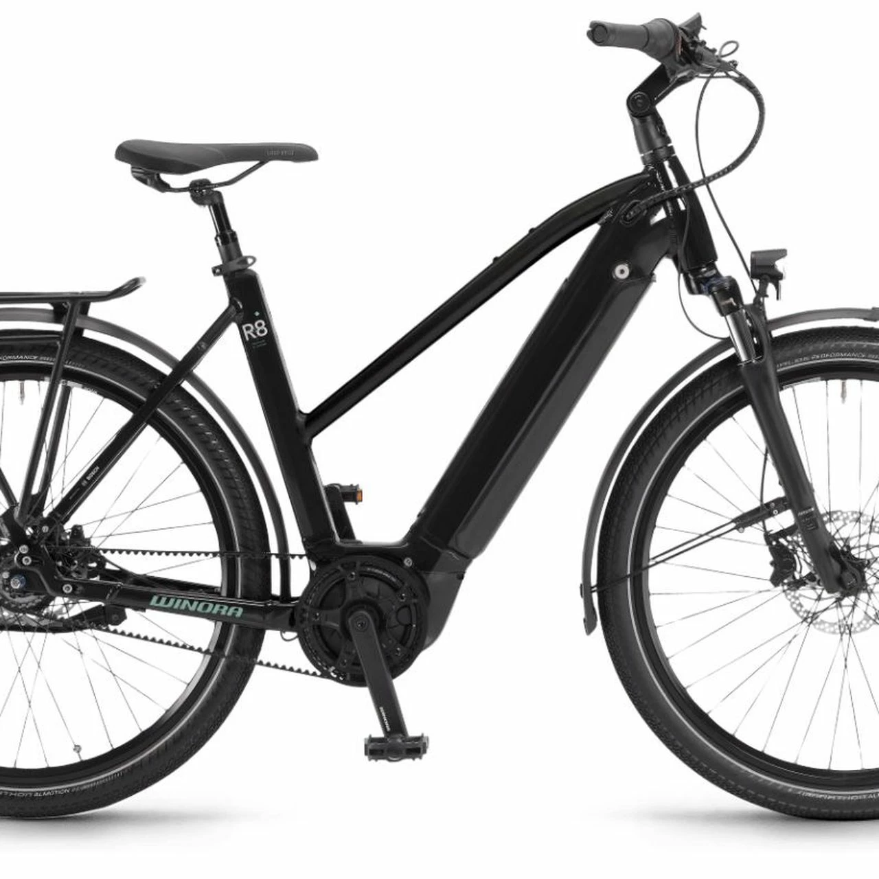Das Winora Sinus R8 625Wh Bosch Elektro Fahrrad 2022 ist ausgestattet mit einer 8-Gang Shimano Nexus Nabenschaltung mit Rücktrittfunktion, einem 250W Bosch Active Plus Motor 50Nm mit leistungsstarkem 625Wh Akku und einer SR Suntour NEX E25-HLO Lockout Federgabel.